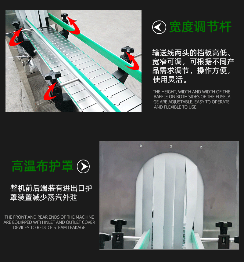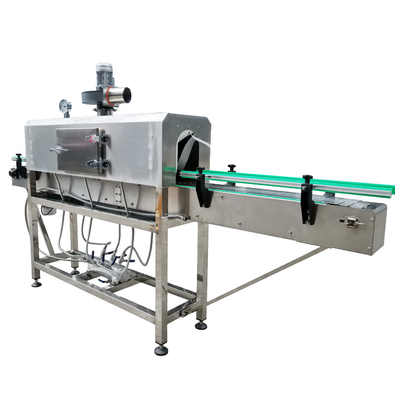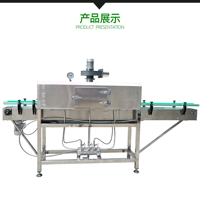 收縮階段:包裝好的產品接著被輸送到蒸汽收縮部分的收縮通道入口。此時,蒸汽發生系統已經產生了合適的蒸汽,蒸汽通過噴頭均勻地噴灑在產品的包裝薄膜上。包裝薄膜在蒸汽的熱量作用下開始收縮,緊密貼合在產品表面。產品在輸送系統的推動下繼續在收縮通道內移動,保證薄膜各個部分都能充分收縮。收縮完成后,通風口排出蒸汽,產品在外界環境下冷卻定型,最終完成蒸汽收縮包裝,從出口輸送帶送出一體機。