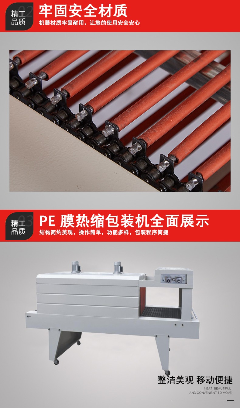 - 適用于中型規模的包裝生產線。其優勢在于加熱均勻、穩定,使用壽命長。在一些中型的食品、日用品生產企業中,不銹鋼加熱系統的 PE 熱收縮機能夠提供高質量的包裝效果,滿足一定批量產品的包裝需求。