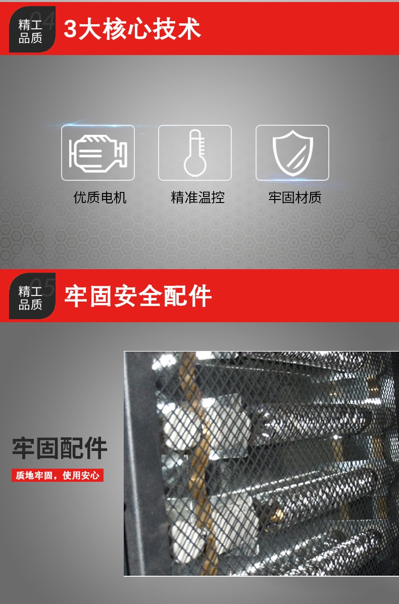 - 在加熱效率方面,石英管能夠快速升溫,一般可以在較短的時間內達到 PE 薄膜收縮所需的溫度范圍(180 - 220℃)。不過,由于石英管是管狀結構,熱量主要是沿著管的軸向和徑向進行輻射式傳遞,在加熱區域的邊緣部分可能會出現溫度稍低的情況,導致加熱均勻性稍差。為了改善這一點,一些設備會采用多個石英管組合排列的方式,使熱空氣分布更均勻。