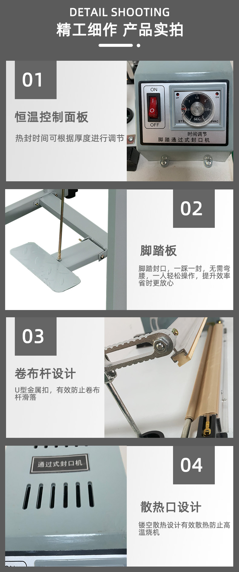 選擇合適的通過式封口機功率需綜合考慮包裝材料、包裝尺寸、生產速度、封口要求及環境因素等,以下是具體分析: