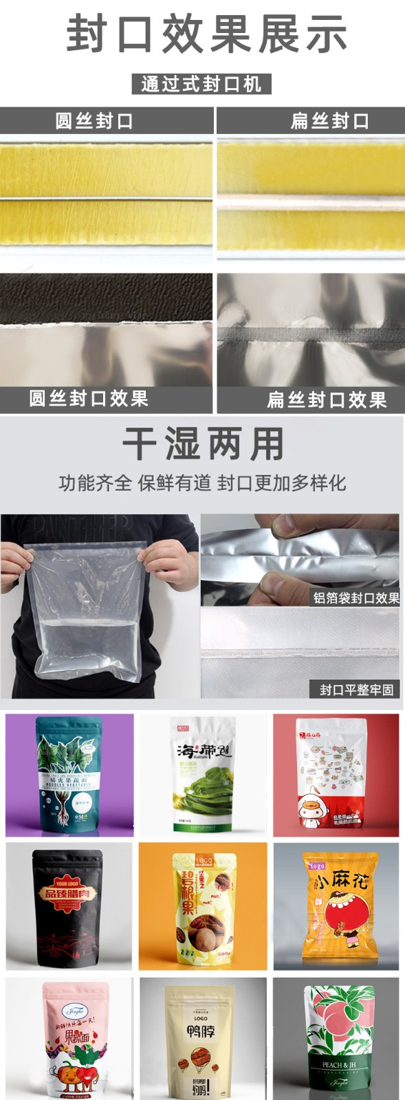 • 長度:如果是長尺寸的包裝袋,在連續封口過程中,為了保持封口質量,也需要足夠的功率支持。對于長度特別長的包裝袋,可能需要考慮具有更大功率和更好熱量保持能力的封口機,以確保整條封口線的質量穩定。