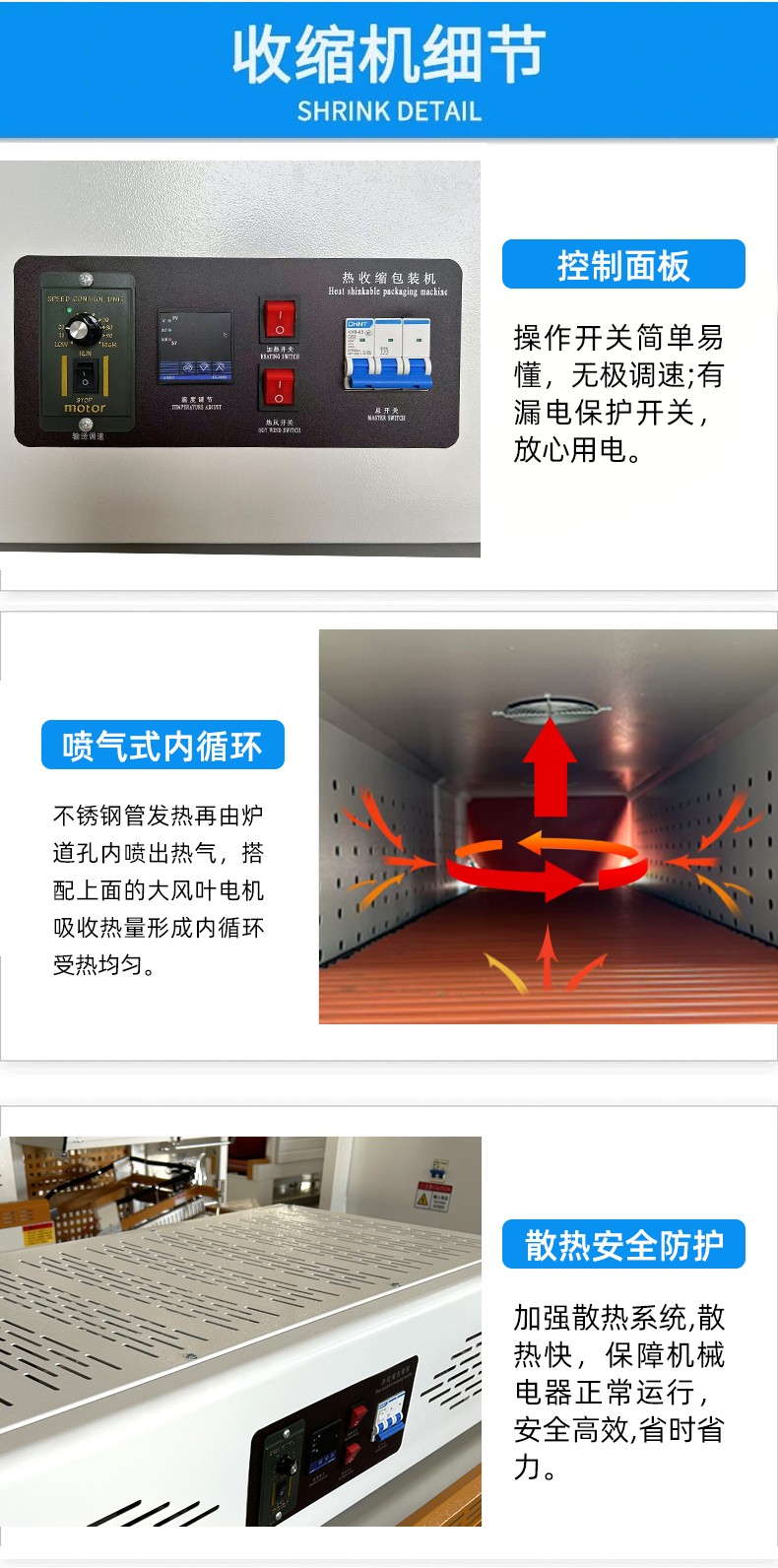 - 熱收縮效果:熱收縮機的收縮效果直接影響產品的包裝外觀。理想的熱收縮效果是使熱收縮膜緊密貼合產品表面,無褶皺、無破裂。這取決于熱收縮通道的溫度均勻性、風速調節以及輸送速度的配合等因素。