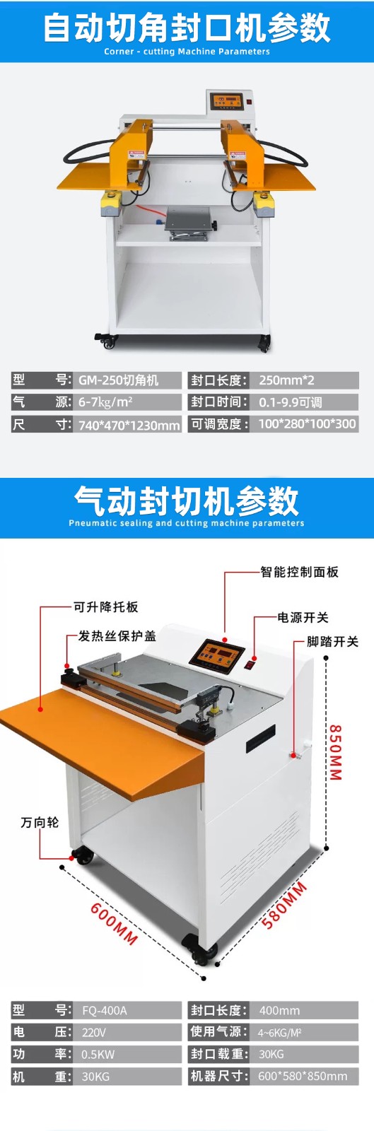 - 材料厚度:包裝材料的厚度也會影響設備的選型。較厚的材料需要更大的封口壓力和更高的熱封溫度,同時對切角刀具的要求也更高。因此,要根據材料厚度選擇具有相應功率和壓力調節范圍的設備。