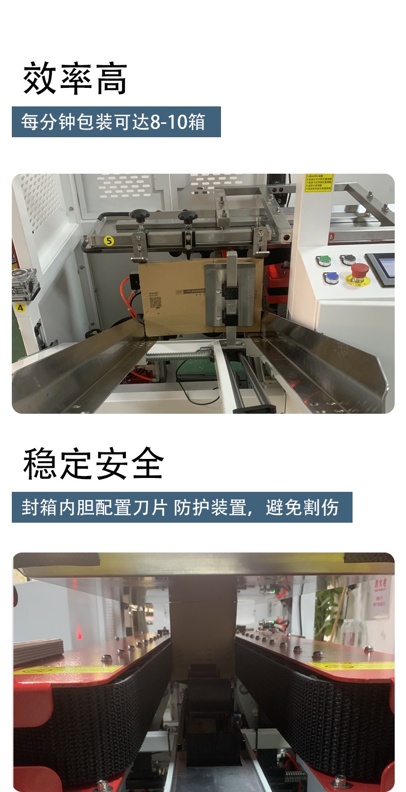 中速機型(如臥式 18-25 箱 / 分鐘)效率可達人工的 5-8 倍,高速機型(40 箱 / 分鐘以上)可滿足規?;a線需求。