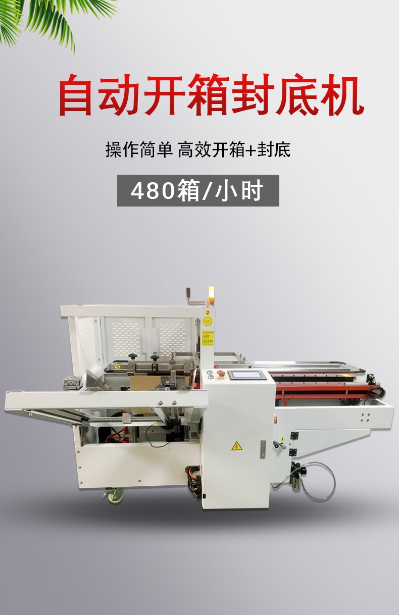 自動開箱封底機作為自動化包裝設備的核心組成部分,其優勢主要圍繞生產效率提升、成本控制、包裝質量穩定、操作便捷性及場景適應性展開,具體可拆解為以下六大核心優勢: