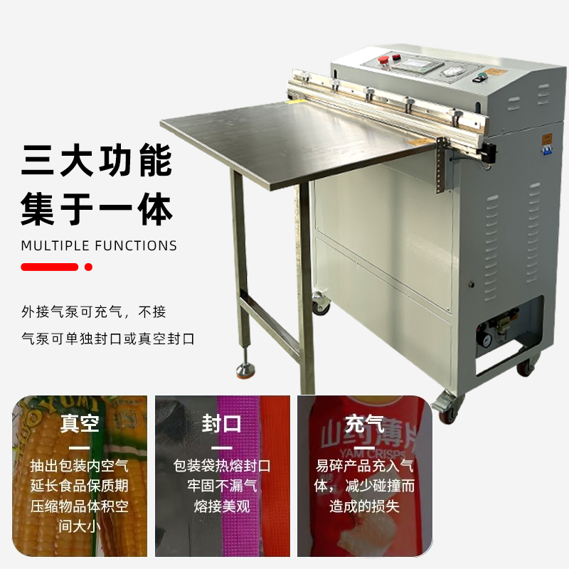 - 例如包裝熟食時,若有肉末、油脂顆粒進入管道,會黏附在管壁導致抽氣阻力增大,真空度從 “≤5mbar” 降至 “≥20mbar”,包裝袋無法徹底抽真空;而過濾裝置可攔截這些雜質,確保抽氣通道始終通暢,真空度長期穩(wěn)定在合格范圍,封口后包裝袋浸泡水中無氣泡(密封性達標)。