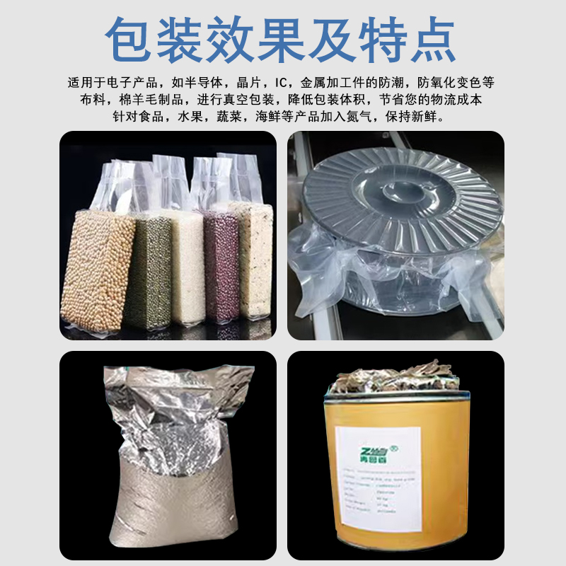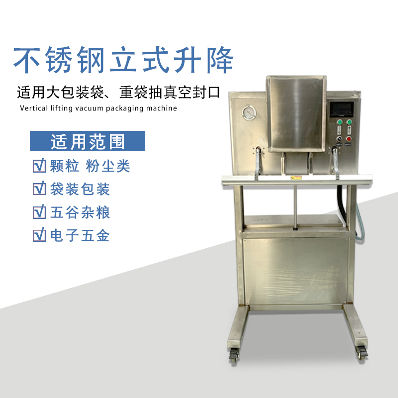 • 立式升降真空包裝機:真空室容積更大,承重能力更強(部分機型可承重 50kg 以上),能處理大袋顆粒(如飼料、塑膠粒)、大件五金件等普通機型無法容納的物品。