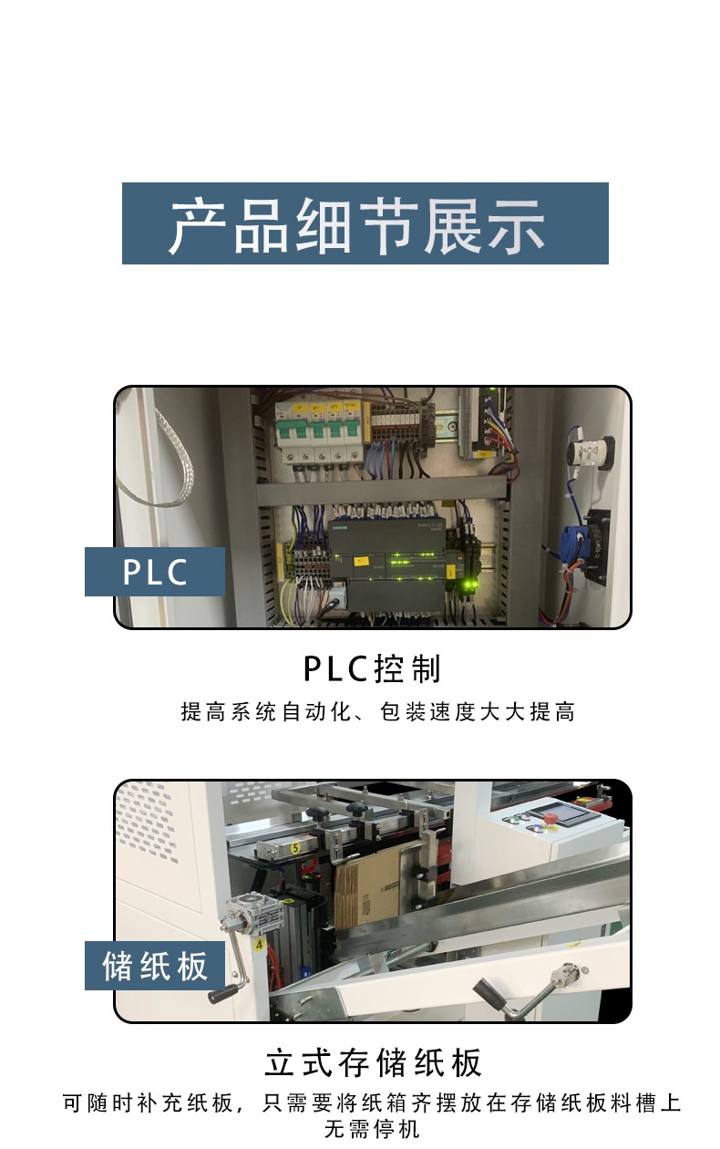 - 自動化程度高:一次完成紙箱吸箱、開箱、成型、折底、封底等包裝工序,可大大減少生產人員和勞動強度。