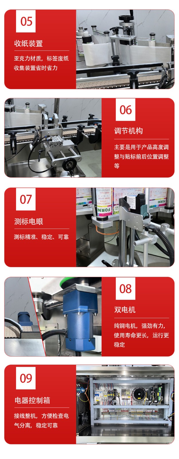 替代人工,降本提質:避免人工貼標歪斜、起泡、效率低等問題,穩定貼標質量,降低單位成本,提升產品包裝美觀度與競爭力。