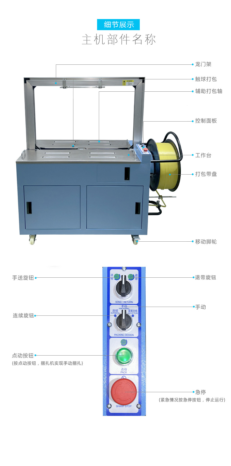 - 半自動打包機(jī):結(jié)構(gòu)相對簡單,價格較為便宜,適合預(yù)算有限、打包量不大的用戶。不過,由于需要人工參與部分操作,長期來看,人工成本可能相對較高。