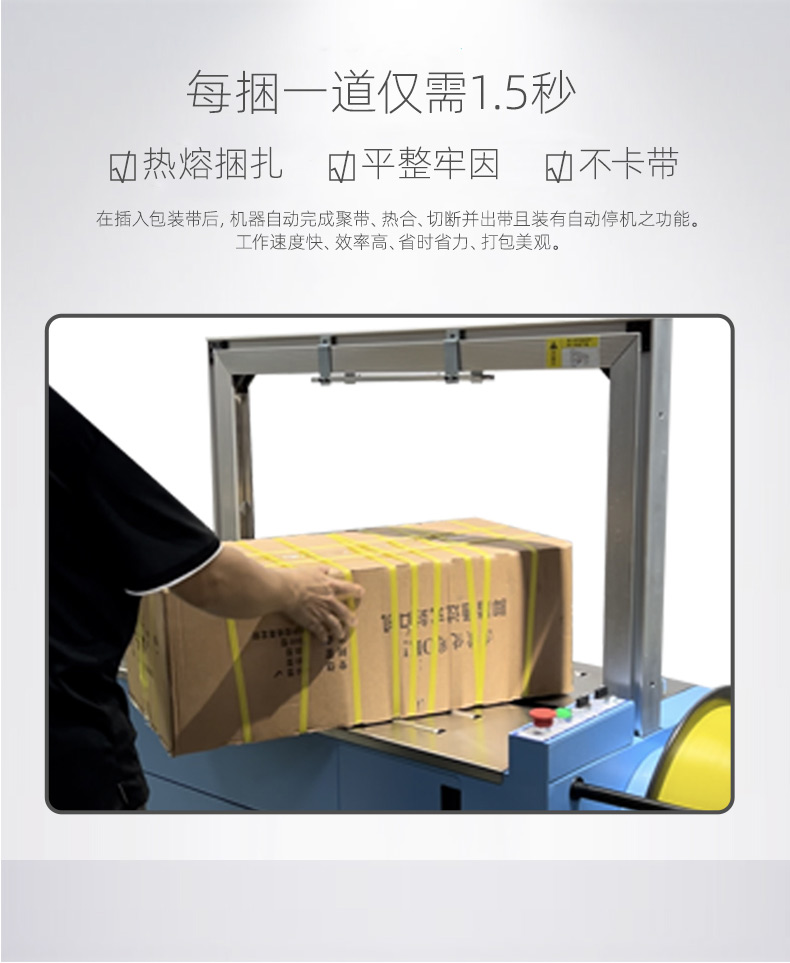 - 半自動打包機(jī):適用于小型工廠、商店、快遞公司網(wǎng)點、辦公室等,這些地方打包量相對較小,使用半自動打包機(jī)既能滿足打包需求,又能在設(shè)備成本和人工成本之間取得較好的平衡