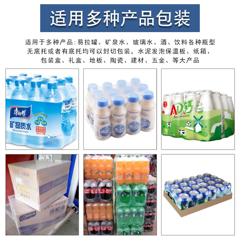 • 全自動袖口式套膜機可以使用多種包裝薄膜,如聚乙烯(PE)、聚氯乙烯(PVC)等常見薄膜材料。企業能夠根據產品的特性(如是否需要防潮、透明度要求等)、成本預算以及環保要求等來靈活選擇合適的薄膜。而且,設備能根據不同薄膜的特性,如厚度、柔韌性等,自動調整套膜的力度和方式,確保套膜質量。