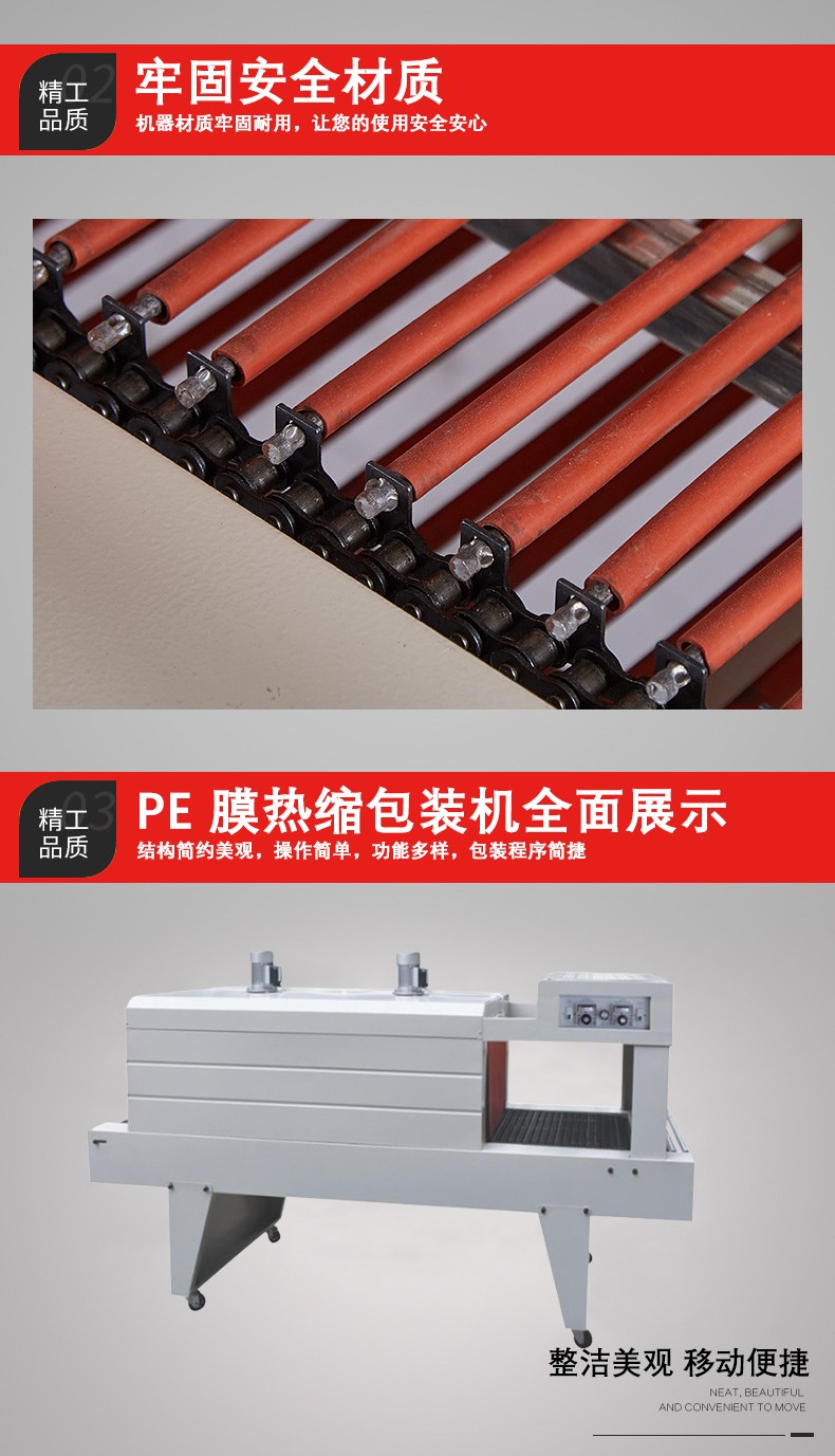 - 適用范圍廣:可以用于包裝各種形狀和尺寸的產(chǎn)品,無論是規(guī)則的圓柱體、長方體,還是不規(guī)則的產(chǎn)品,只要選擇合適的 PE 薄膜,都可以用這種機器進行包裝。而且它可以與其他包裝設(shè)備和生產(chǎn)線集成,實現(xiàn)自動化包裝,提高生產(chǎn)效率。