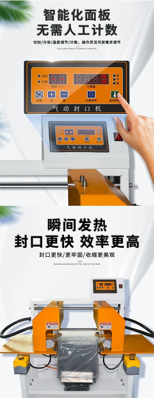 - 封口質(zhì)量好:通過精確控制氣動壓力和加熱溫度、時間,能夠保證封口處的薄膜熔接牢固、平整,封口強(qiáng)度高,不易出現(xiàn)漏包現(xiàn)象。