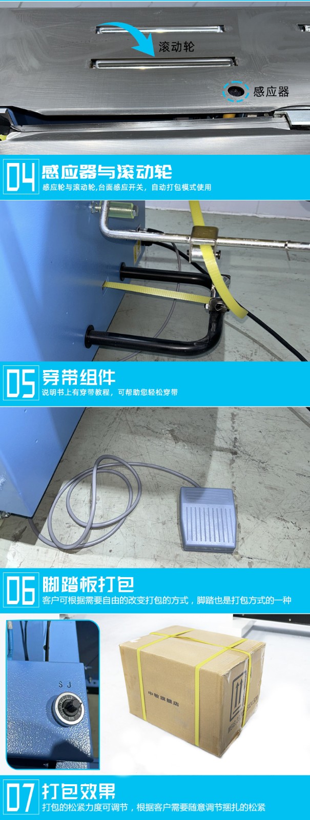 - 自動上帶:機器啟動后,會自動從打包帶卷中抽出打包帶,并將其傳送到預定的位置,準備進行打包。這個過程無需人工干預,大大提高了工作效率。