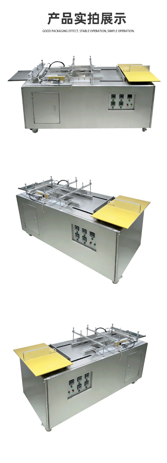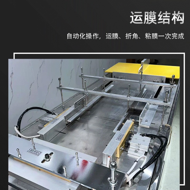 設(shè)備通過 “膜料預(yù)處理→人工上料定位→三維裹膜成型→熱封切邊→折邊定型→成品輸出” 的流程,實(shí)現(xiàn)產(chǎn)品的立體包裝,具體步驟拆解如下: