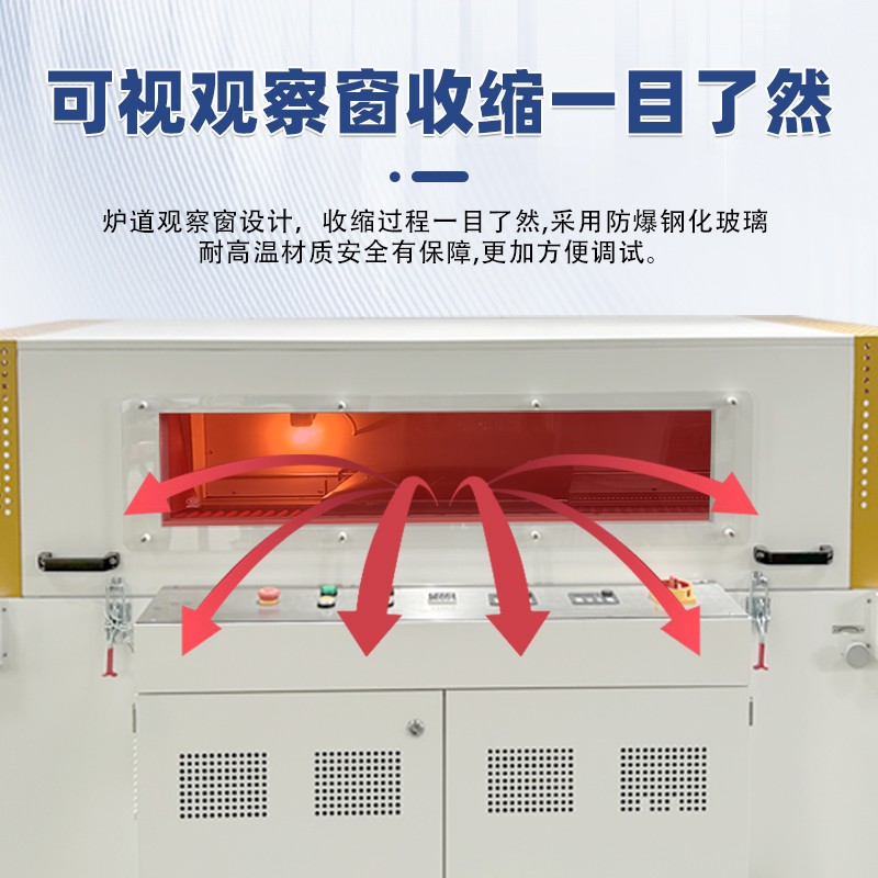 - 可視窗設計:設備設有可視窗,能夠讓操作人員清晰地觀察到收縮過程,便于及時發(fā)現和調整包裝過程中出現的問題,確保包裝質量。